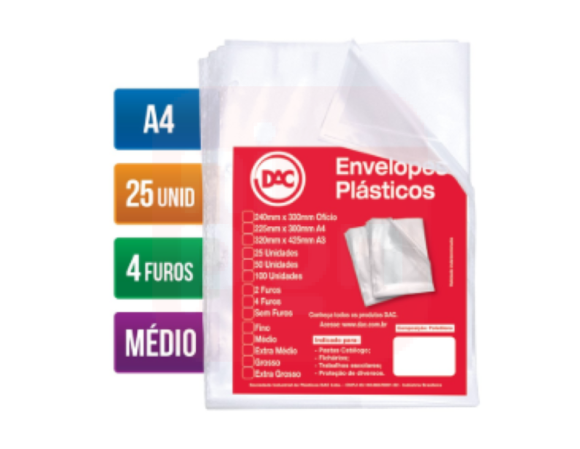 ENVELOPE COM 4 FUROS A4 DAC C/25