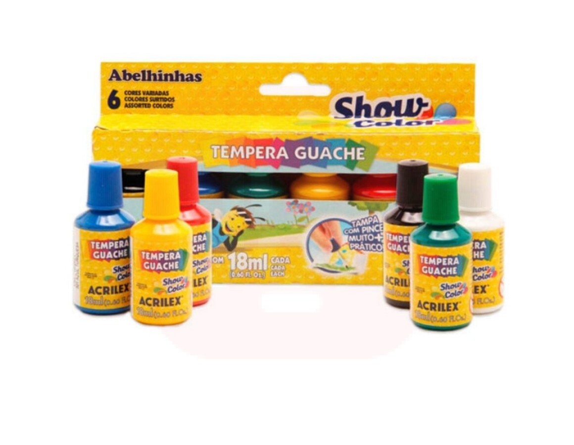 2. Tinta Guache 6 Cores + Pincel - Acrilex
